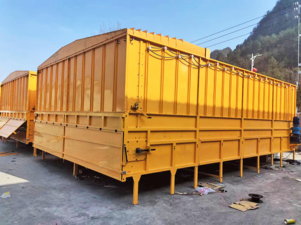 b) 短时停机,热风炉可不熄火,应先关闭鼓风机,当烟气温度降至300℃以下时,关闭引风机,随着粮食的逐渐排空自上而下依次关闭所有热风机;